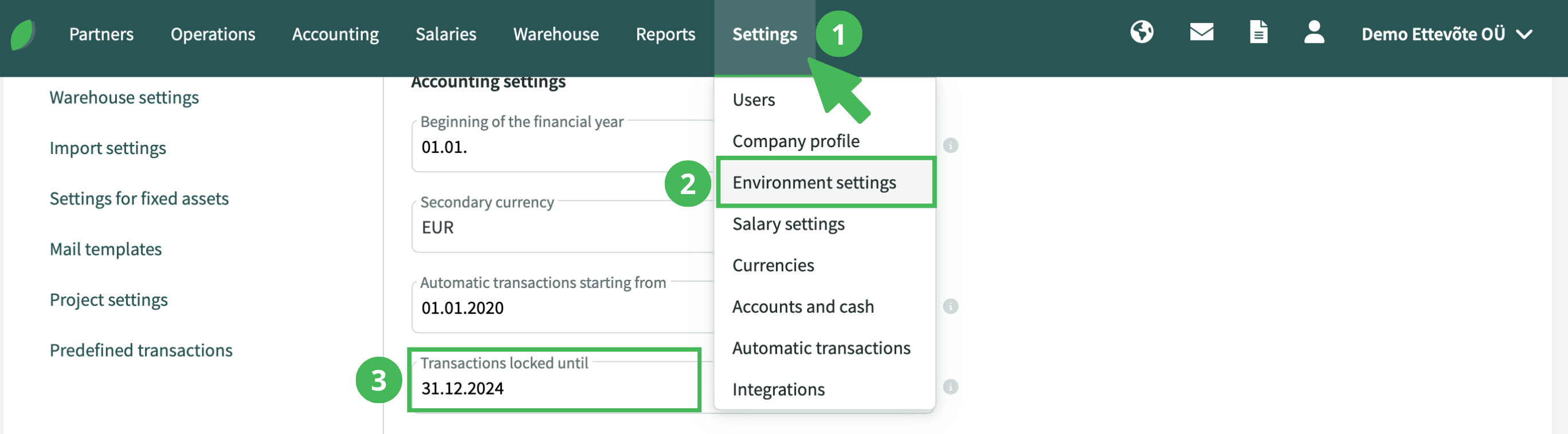 In the settings you can specify a date before which entries can no longer be changed (“Settings → Environment settings”). This locks data after reports have been confirmed. It helps avoid accidental changes in past periods. If needed, you can always adjust the date again.